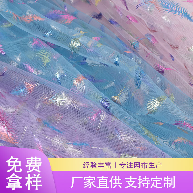 現物の羽の図案のナイロンのアメリカの網の底の糸は金の舞台にアイロンをかけて服装の贈り物を手配して柔らかい網の糸の加工を飾ります。