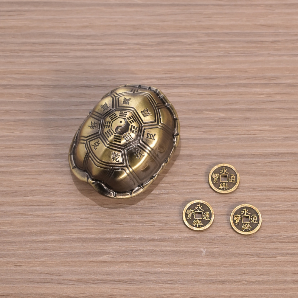 亀の殻の道家の八卦のかめの殻は八卦の3才の手の取っ手を振って手の皿の文を解凍して亀甲の置物の道具を遊びます。