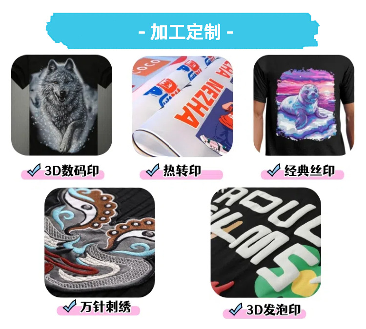 加工カスタム300グラム26本の双糸精櫛が緊密に試合して丸首半袖tシャツの襟元にロゴを印刷する