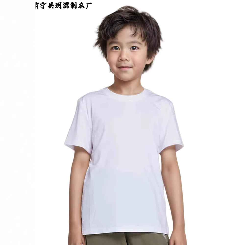 【現物】子供tシャツ文化シャツ綿丸襟半袖上着広告シャツ幼稚園クラス服純色半袖