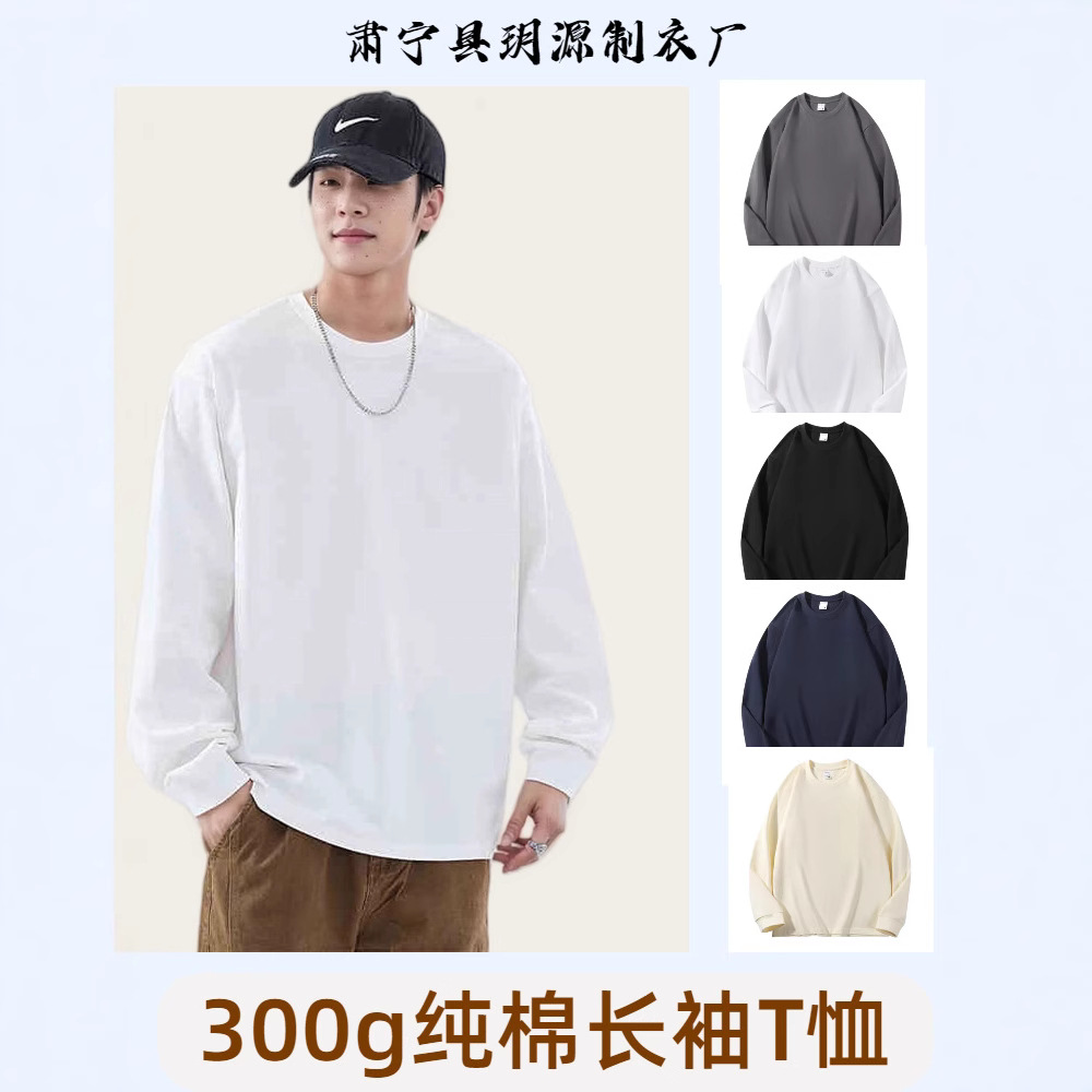 300グラムの重ポンドの上口の長袖の丸首のtシャツの男女の純色の港の風のゆったりしている頭の長袖のtシャツの男女は同じです。