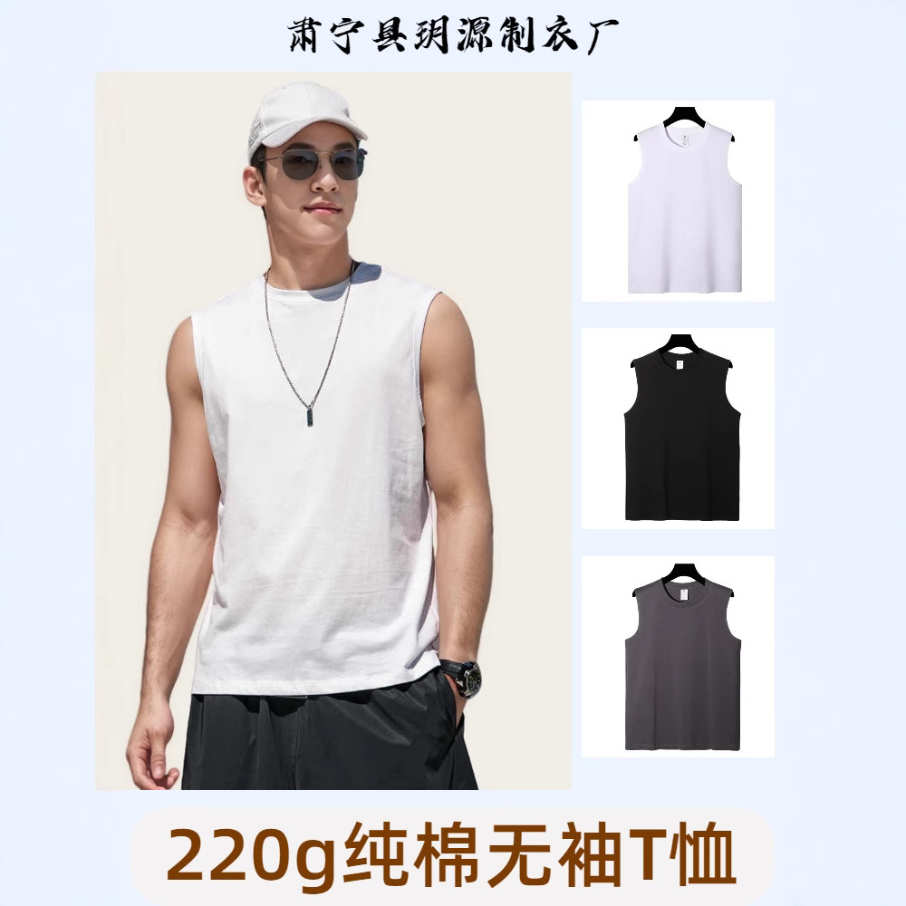 ヘビーウェイト 230 グラム純綿ノースリーブ Tシャツボトリングシャツメンズ無地ベストカジュアルスポーツアンダーシャツベストカスタムロゴ