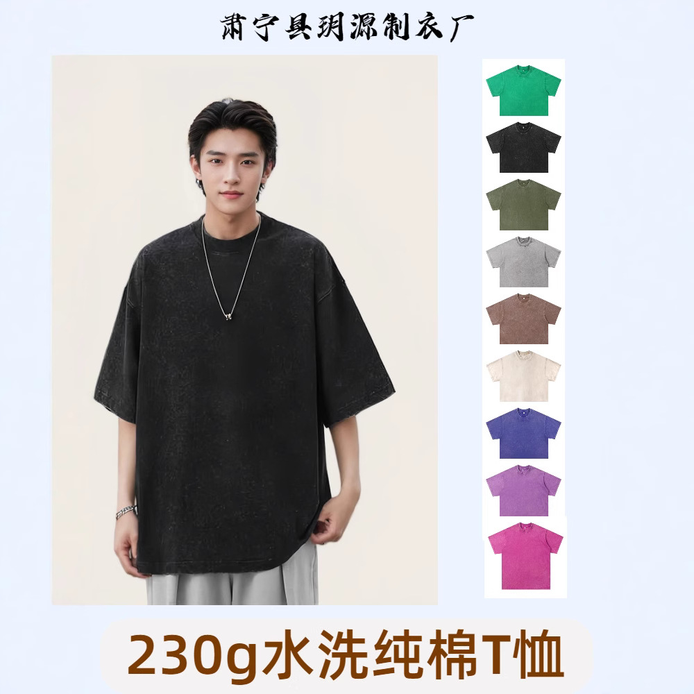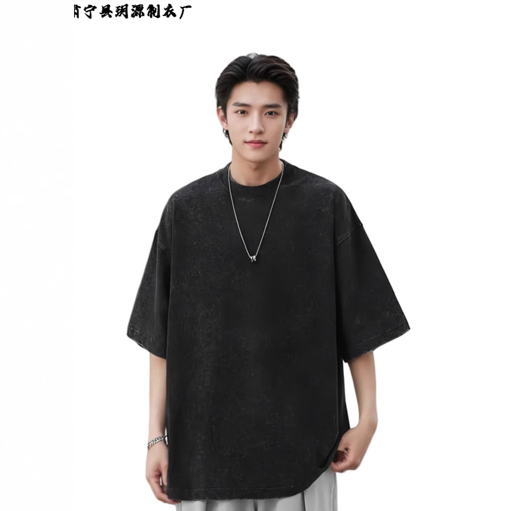 230g純綿水洗いtシャツレトロ砂洗いワックス染め雪花oversize大サイズ欧米肩ゆるいtシャツ