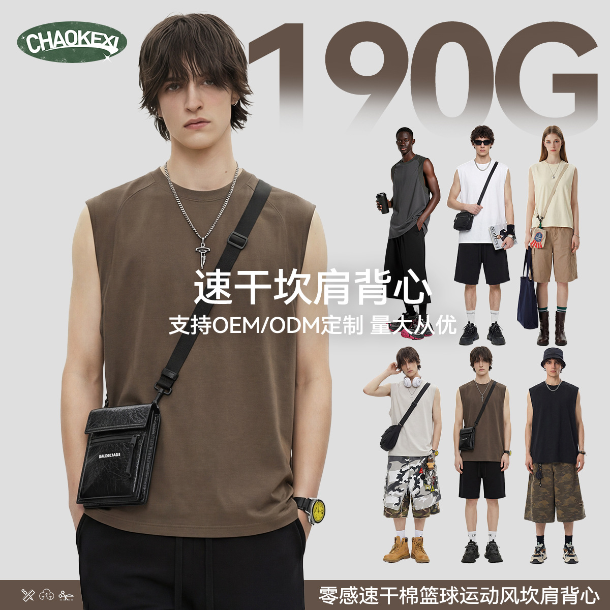 2025 夏ヨーロッパとアメリカの貿易 230 グラムクール生地無地スポーツベストルーズフィットネスチョッキ tシャツメンズトレンド