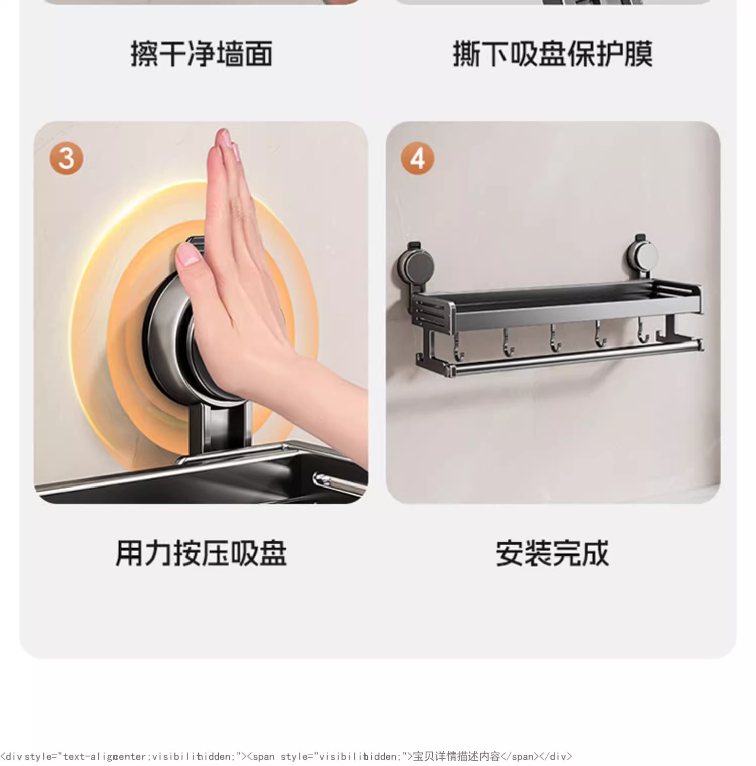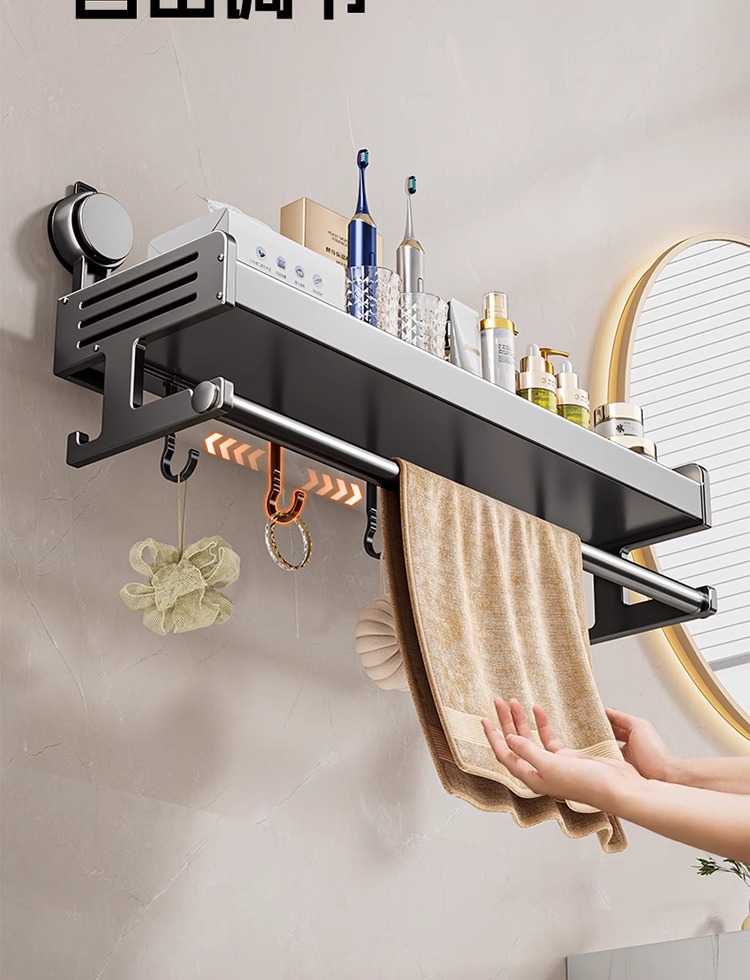 吸盤タオル棚トイレ穴なし壁掛け棚浴室タオル棒バスタオル収納単棒ハンガー