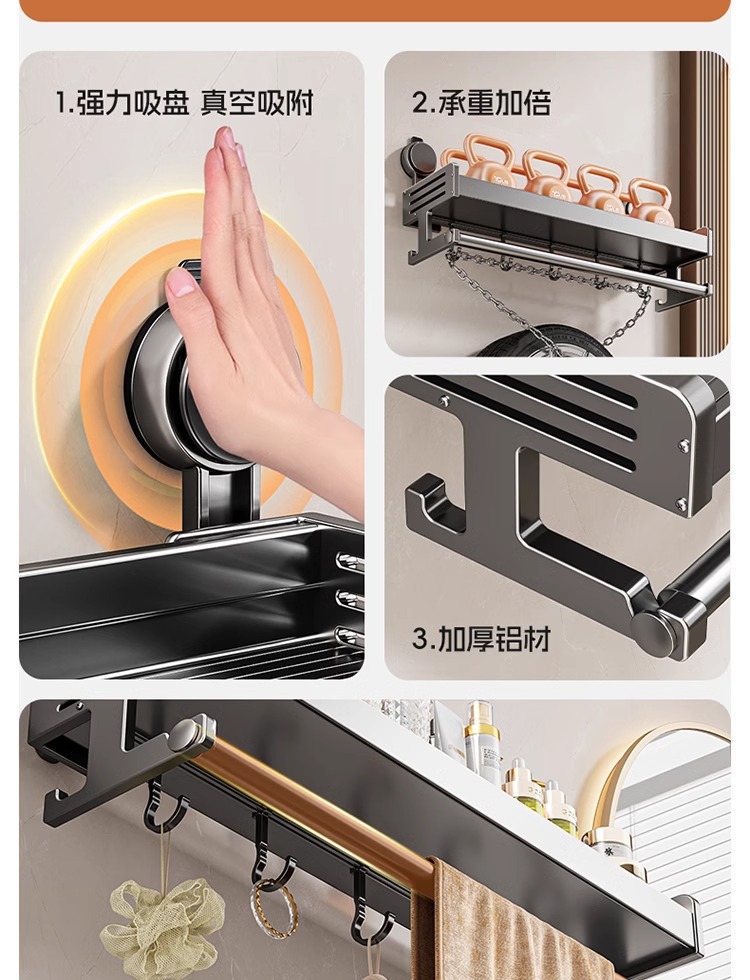 トイレ吸盤ラック浴室トイレタオル入浴剤シャンプー化粧品収納棚穴なし