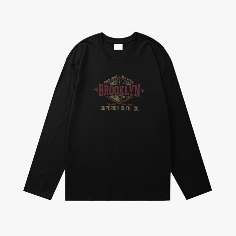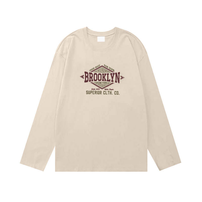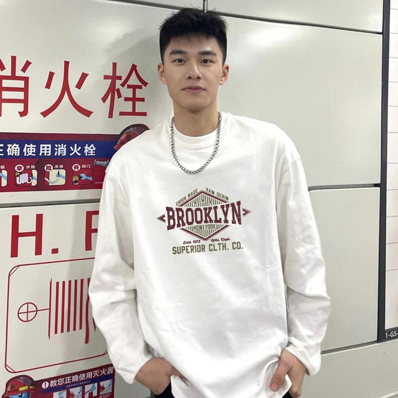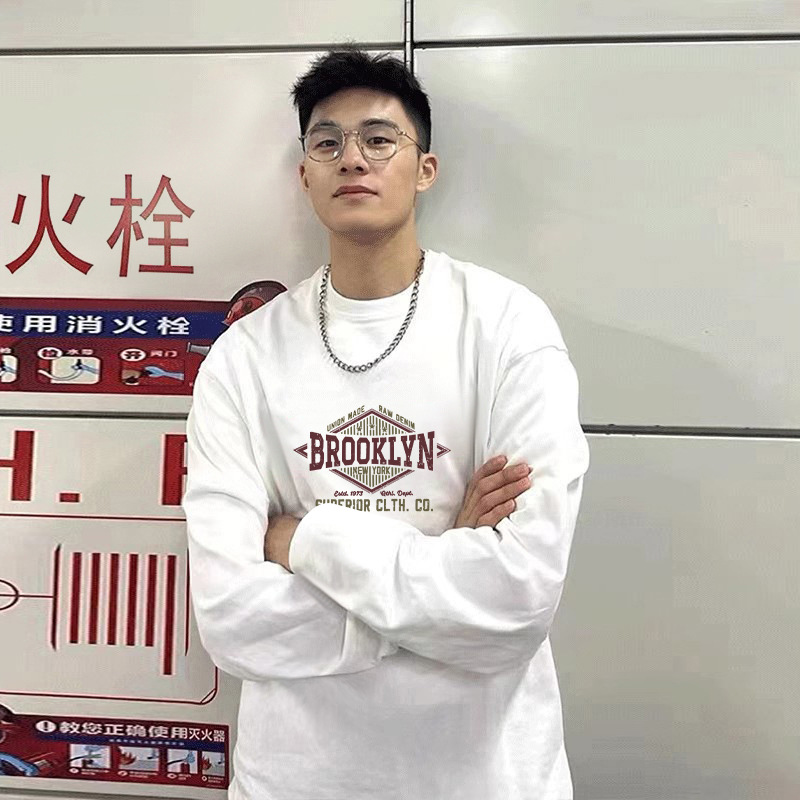 春秋200g重ポンド精櫛綿長袖tシャツ男性ファッションブランドのプリントがゆったりしています。
