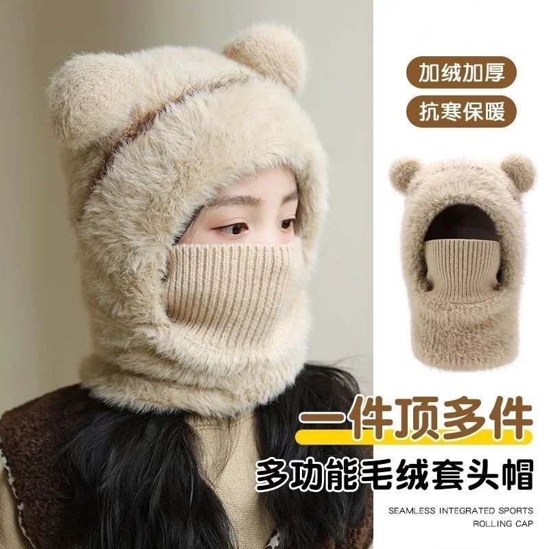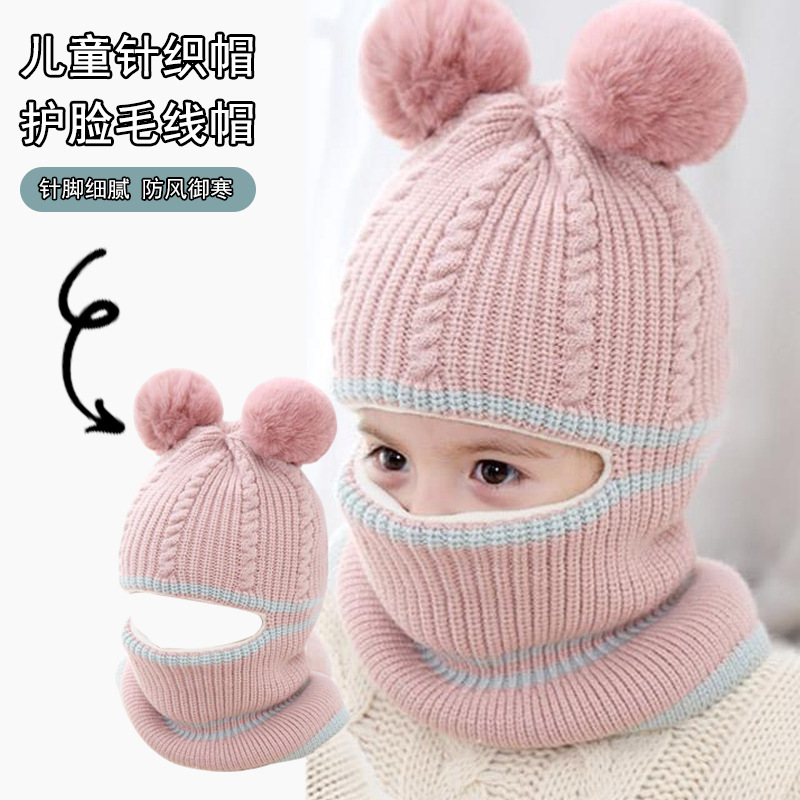 儿童帽秋冬季防风护耳围脖一体毛线帽加厚保暖护脸男女童宝宝帽子