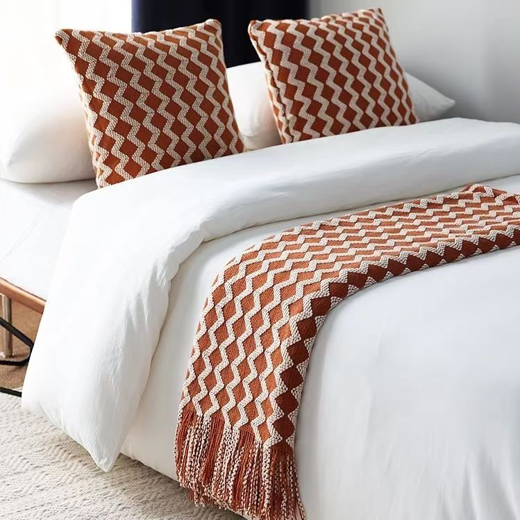 メーカー卸売りソファー毛布復古菱格毛糸毛布色メリヤスベッドの後ろのベッドにタオルを掛けたベッドの後ろの毛布