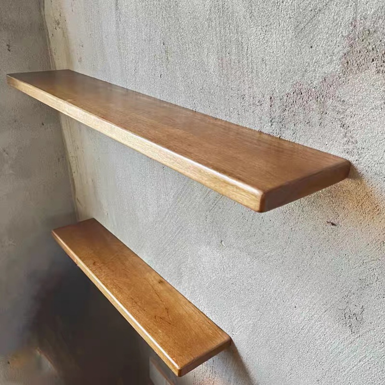 榉木实木隔板墙上置物架简约一字隔板客厅卧室墙壁装饰壁挂木书架