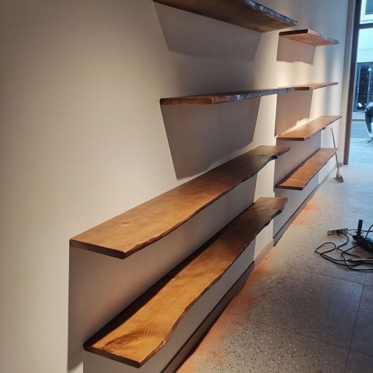 悬空电视柜置物架墙上免打孔机顶盒收纳实木一字搁板胡桃中古层板