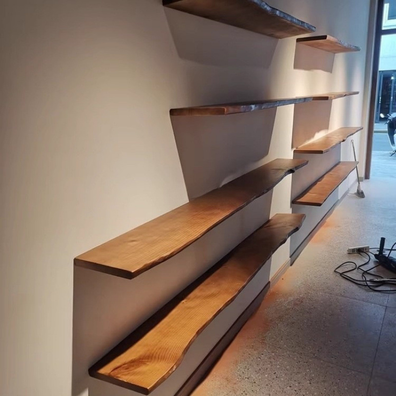 一字隔板置物架实木无痕书架墙壁架原木层板背景墙艺术鞋包壁挂架