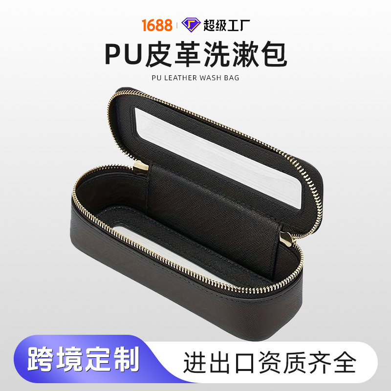 Amazon新品旅行ポータブルレザー防水透明洗面バッグ大容量化粧ブラシスキンケア用品収納バッグ