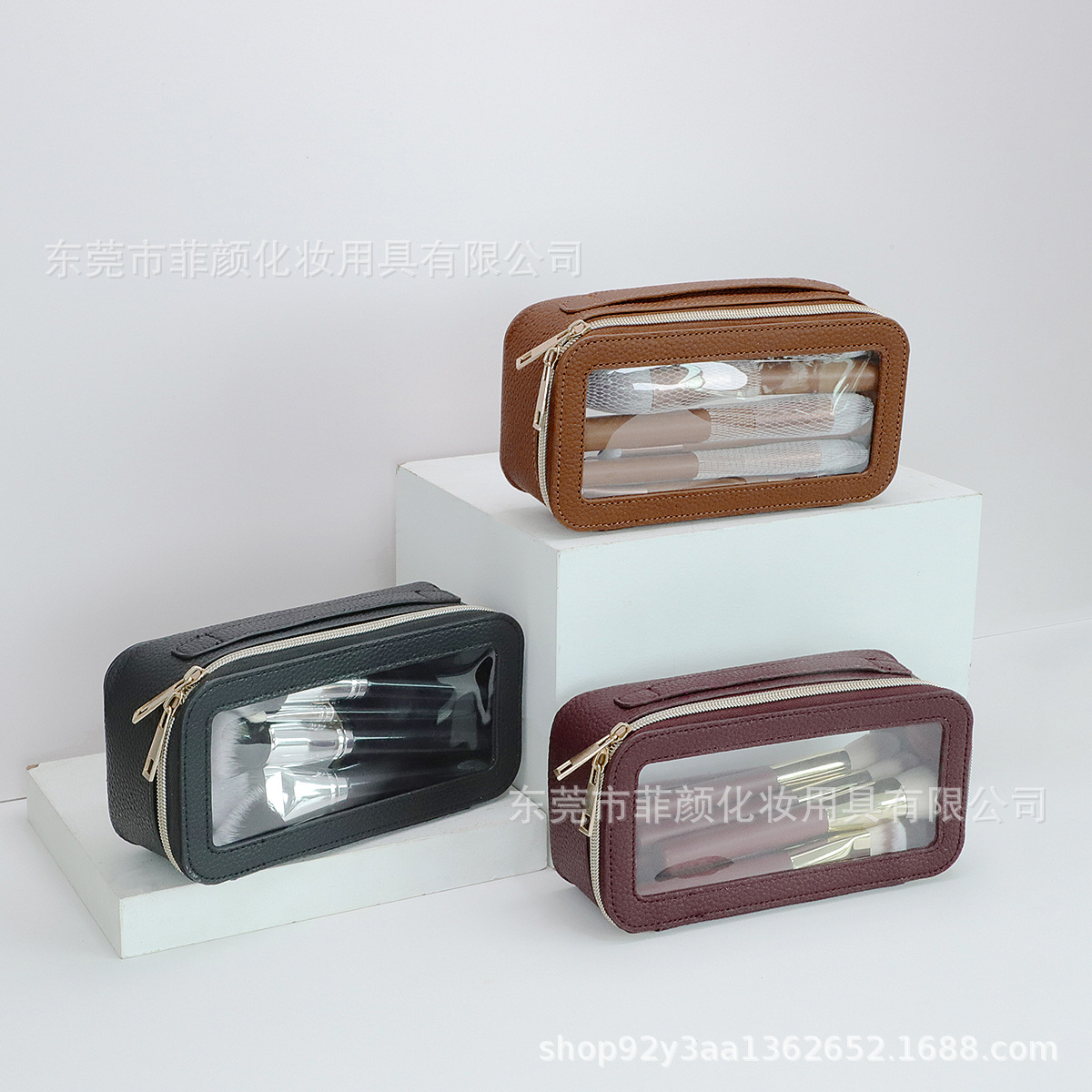 FIYAN跨境PVC透明化妆包化妆刷收纳包旅行大容量透明化妆刷包多色