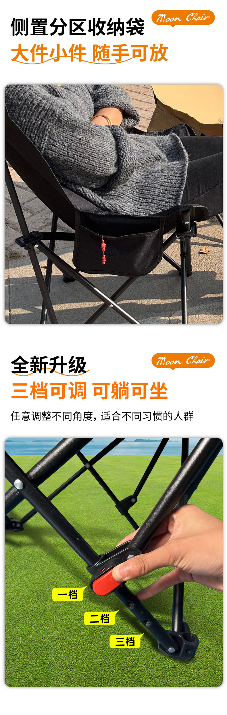 户外加棉月亮椅高靠背可坐可躺便携美术生写生椅野外露营月亮躺椅