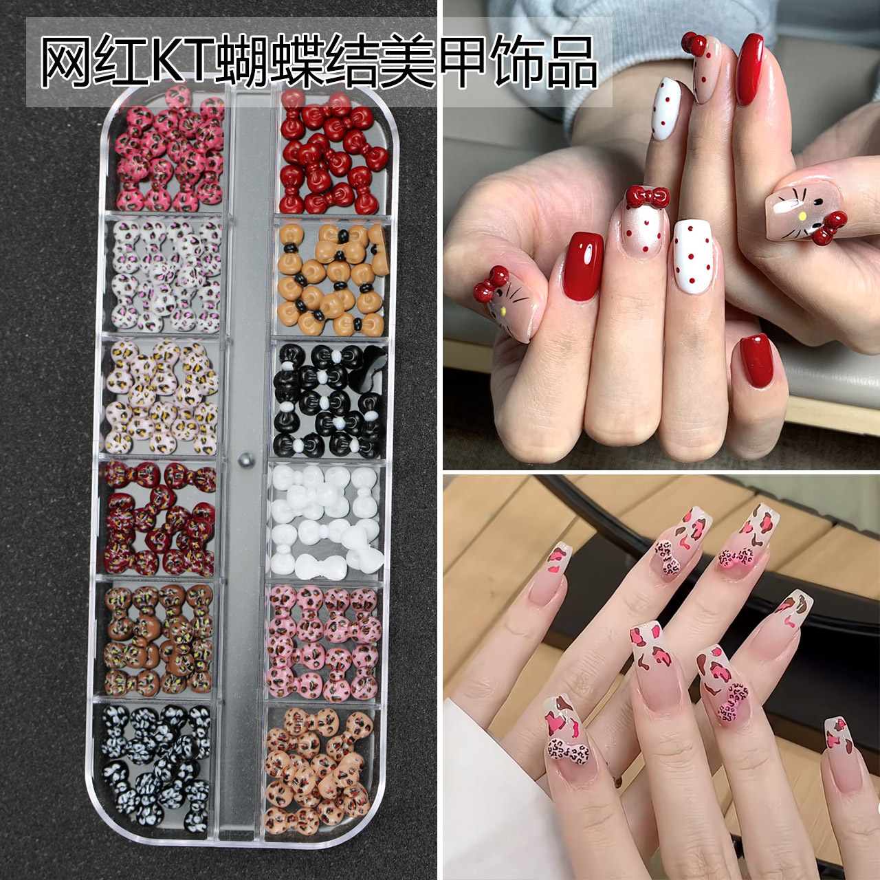 ネット赤豹紋蝶ネクタイ美甲ドリル甘い心かわいいkitty猫小蝶ネクタイ立体爪装飾品