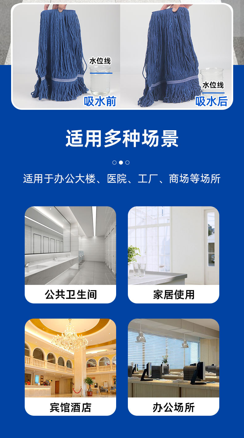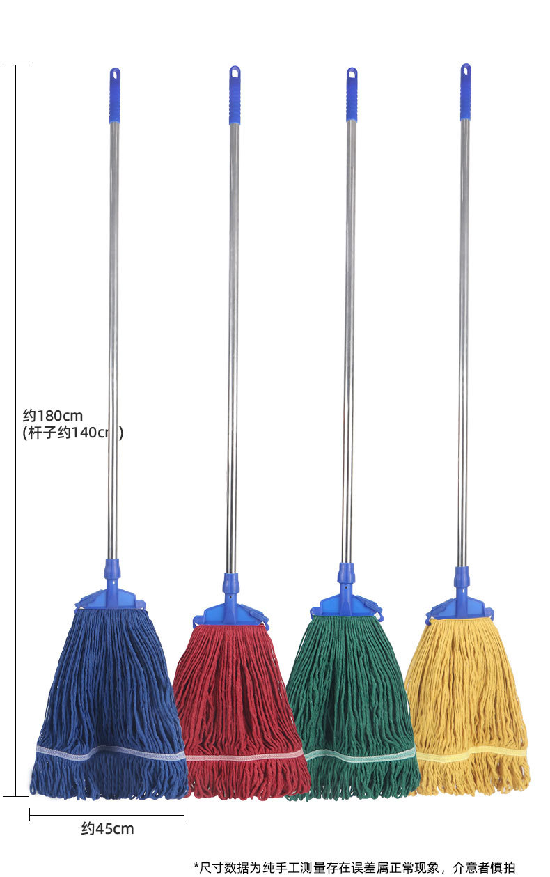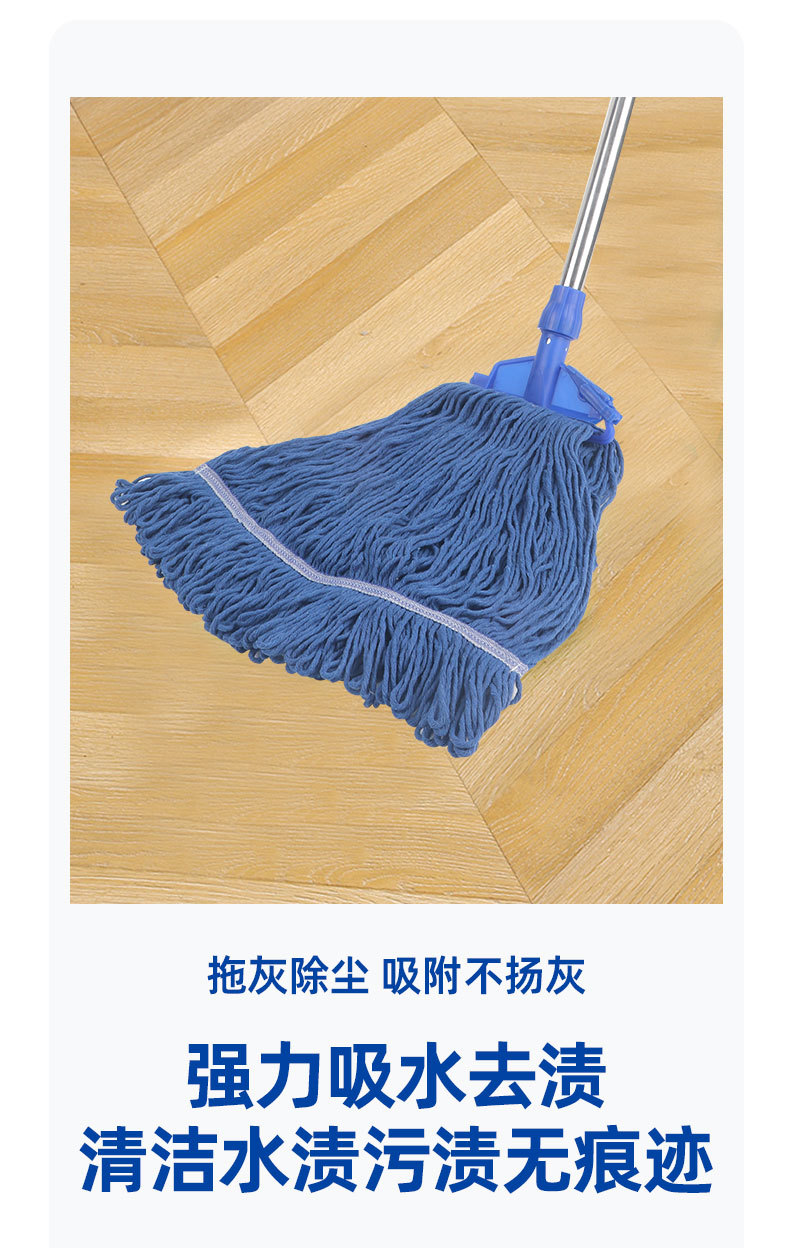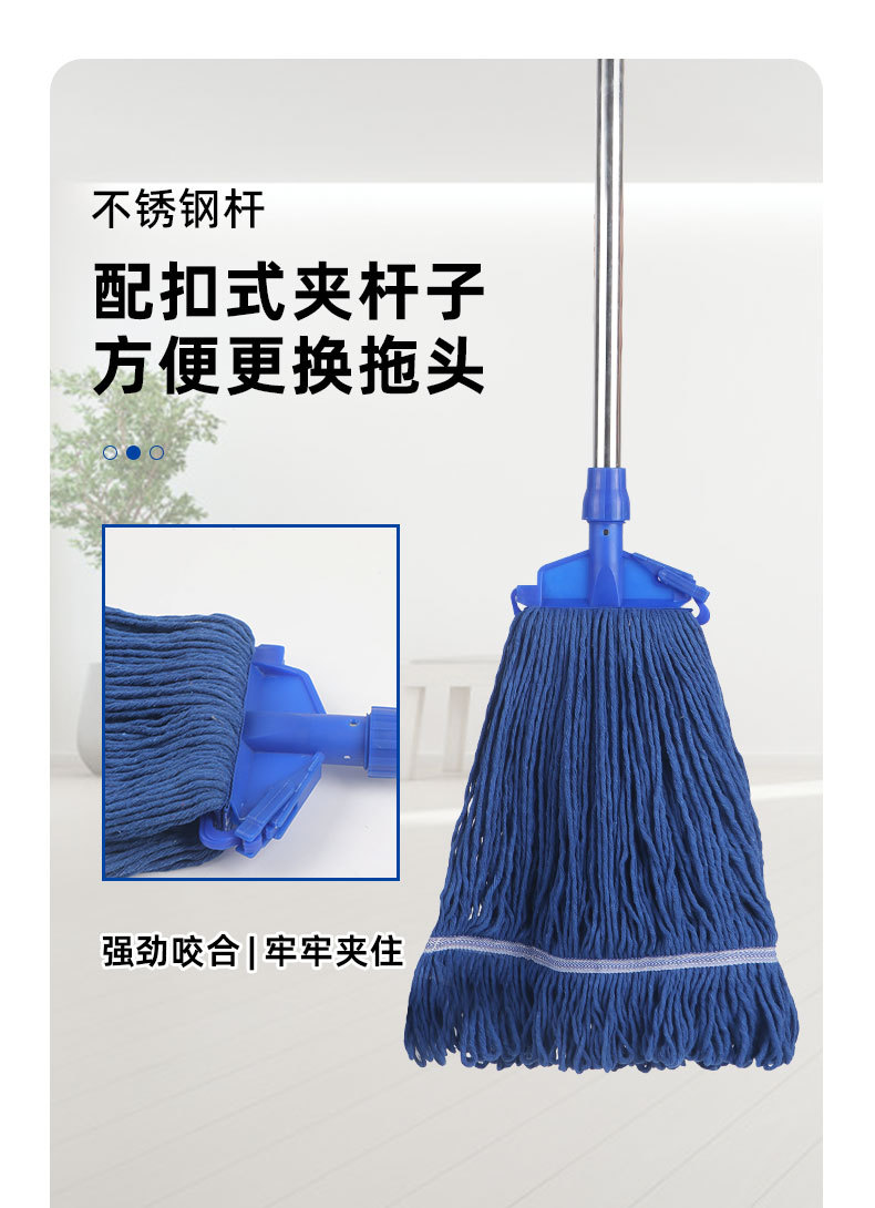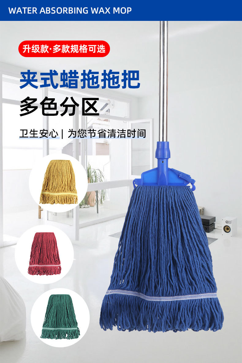 昔ながらの繊維モップ 家庭用 ワンタッチ吸水 広頭鉄棒モップ 清掃 ホテル 物件管理 工場 吸水王