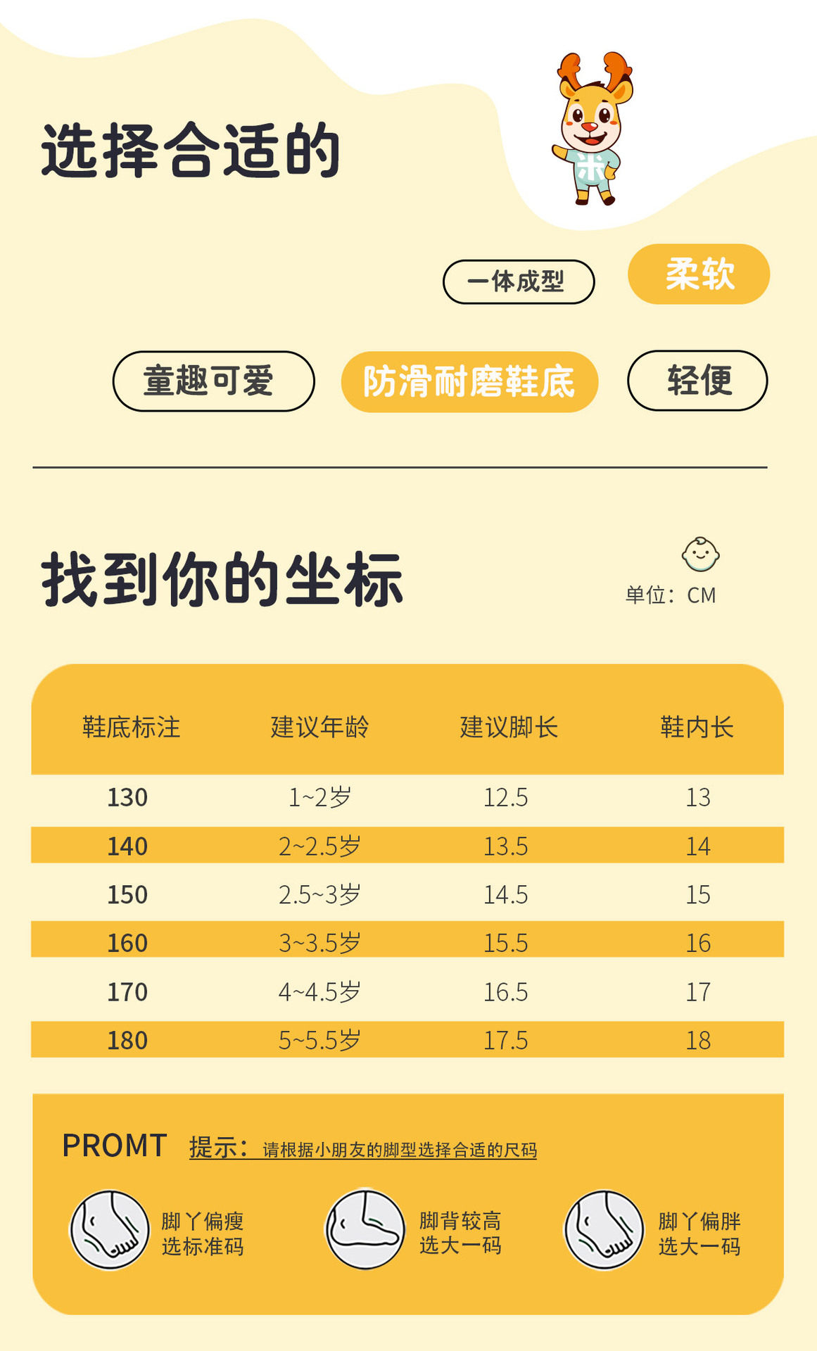 サイズ 内寸長さ13cm [推奨足長12.5cm] 130,内寸長さ14cm [推奨足長13.5cm] 140,内寸長さ15cm [推奨足長14.5cm] 150,内寸長さ16cm [推奨足長15.5cm] 160,内寸長さ17cm [推奨足長16.5cm] 170,内寸18cm [推奨足長17.5cm] 180