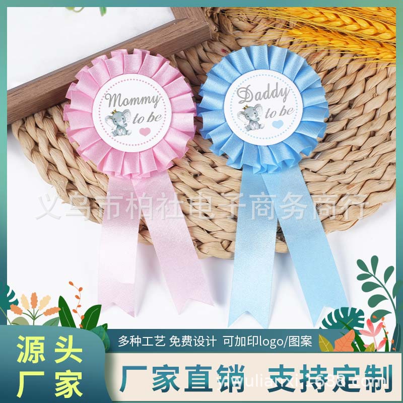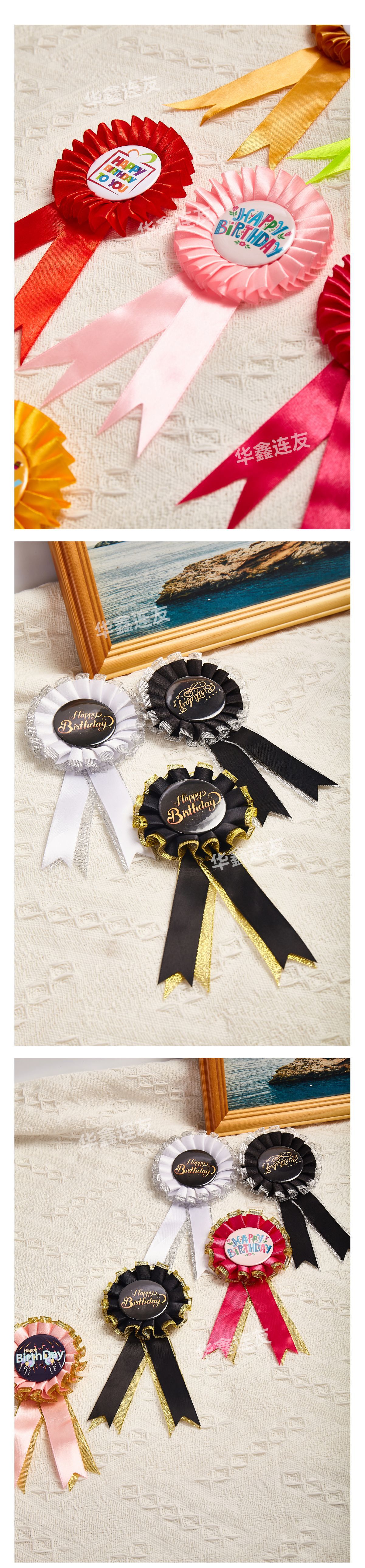 跨境专供彩色丝带胸花徽章儿童生日派对节日用品马口铁胸章定制