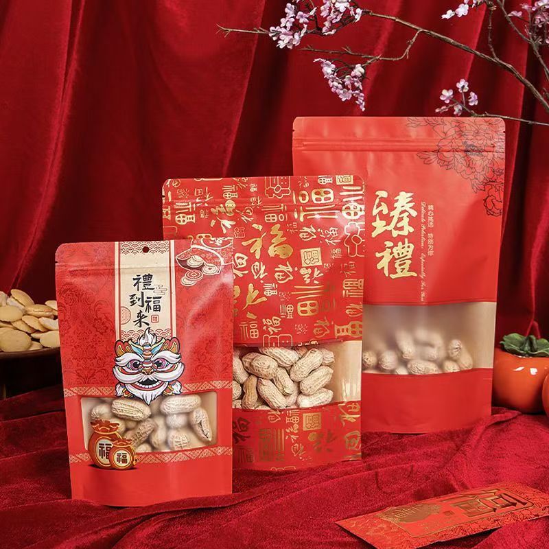 新しい年用品クラフト紙包装袋ナッツ間食ドライフルーツギフト袋食品密封自立自己密封ジッパー袋