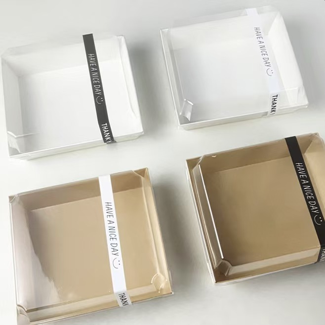 日本式綿巻き包装箱pet白カード防霧スイス巻きムースカットのデザートネット赤焙煎ケーキ箱