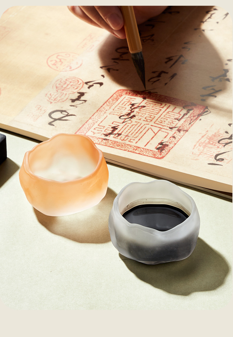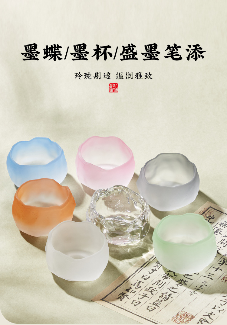 ガラス製の小さなインク皿ペン、書道ペン、インク皿、中国絵画書斎、文鎮、装飾品、多機能学習用品、装飾品