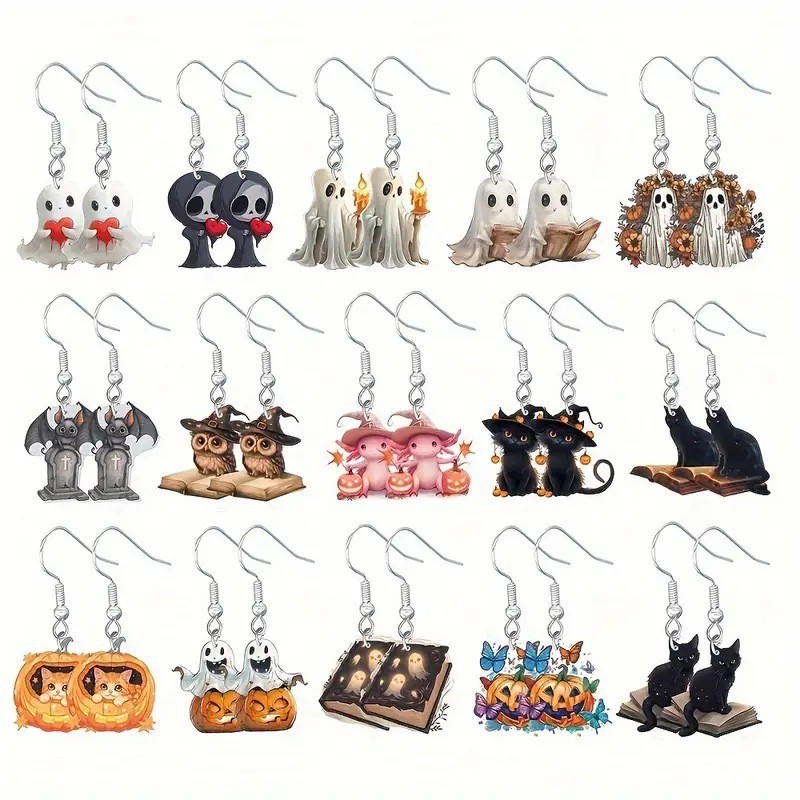 跨境万圣节主题挂式耳环可爱派对系列猫头鹰魔术帽猫鬼装饰品耳环