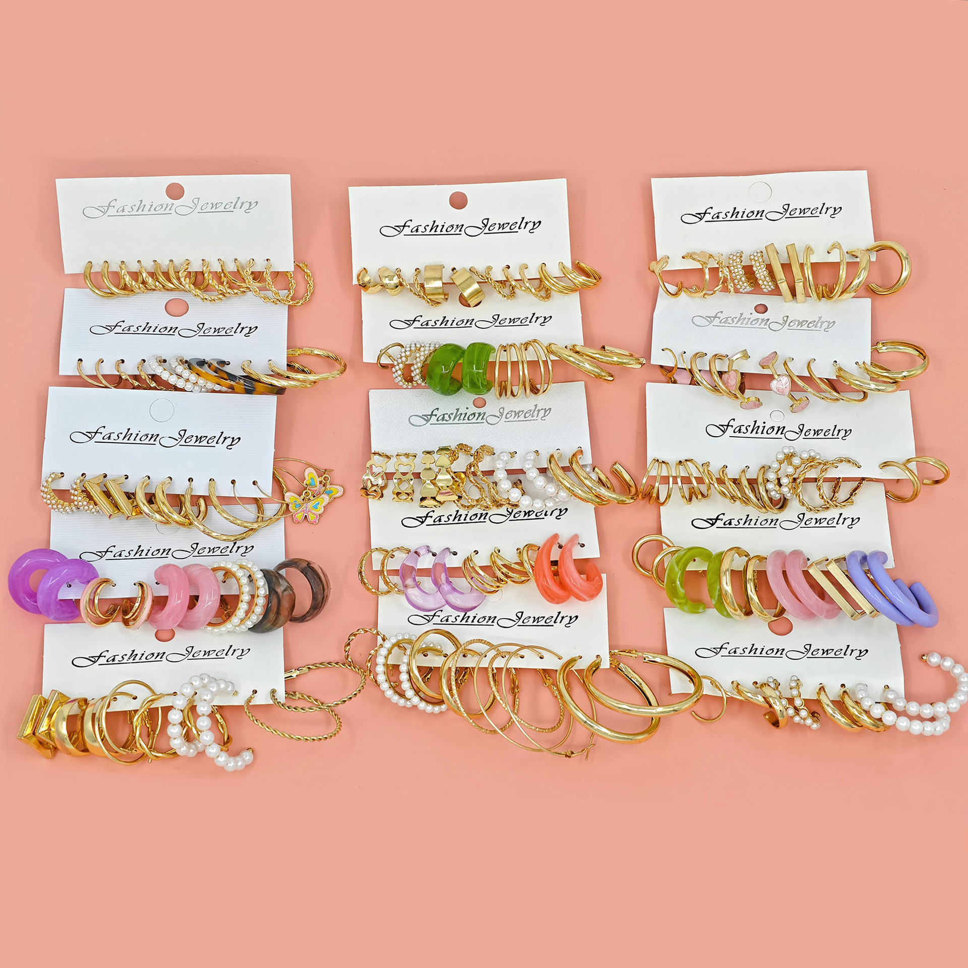 クロスボーダー新型春夏シンプルC形高級感樹脂カラー水滴耳飾り軽豪華中空イヤリング女性セット