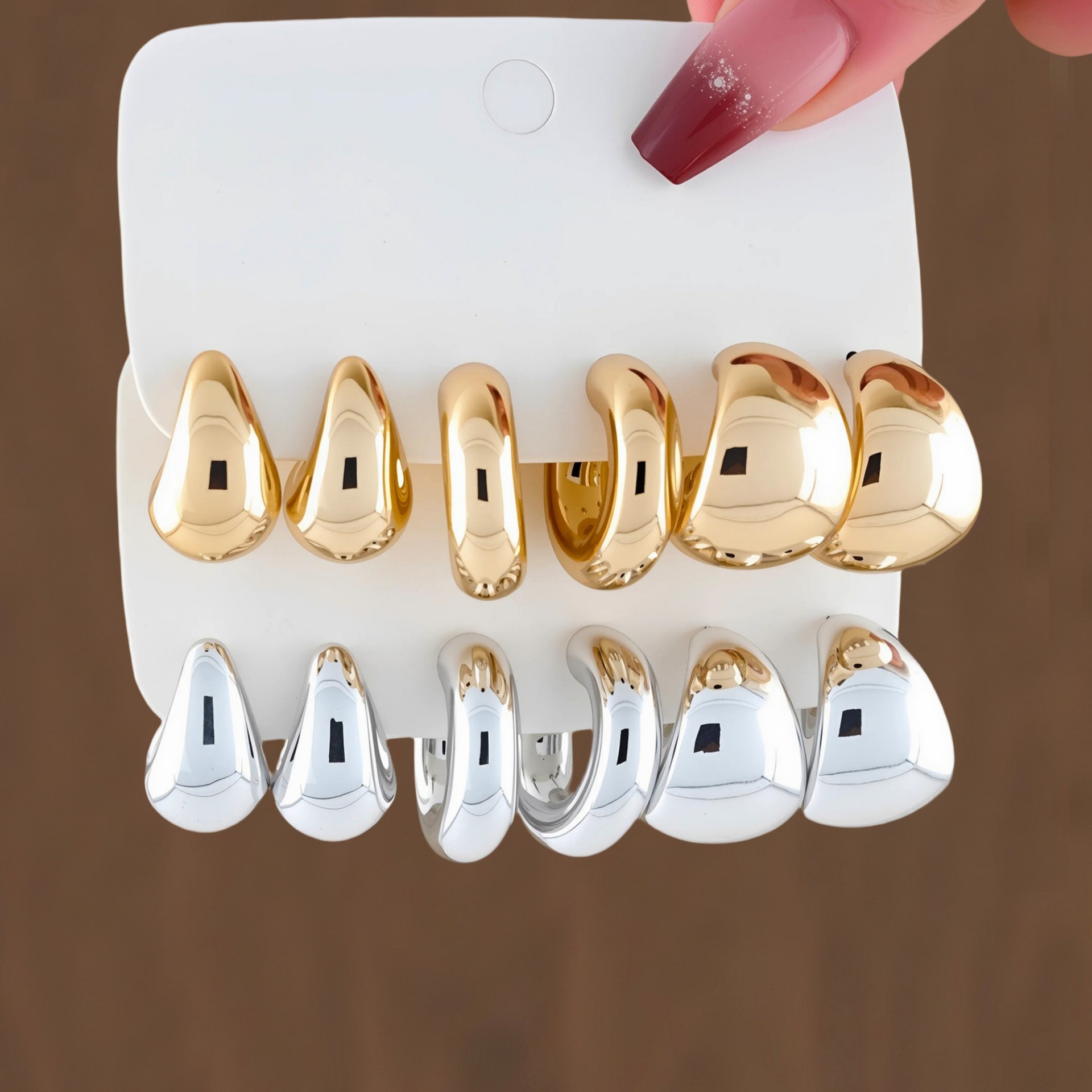 国境を越えて欧米の合金の四角の幾何学の女性のイヤリングのスーツのC形の高級感の耳輪の多くのセットを売ります。