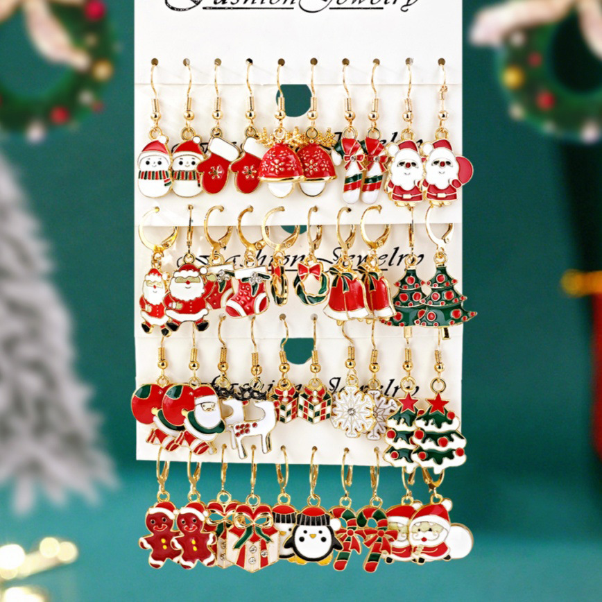 越境欧米のクリスマスのイヤリングの女性の個性のアイデアの合金の雪だるまのサンタクロースのプレゼントは油のイヤリングを垂らします。
