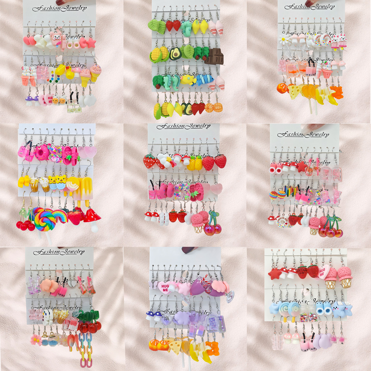 新しいファッションの清新で甘い樹脂は食べ物のドーナツの間食のロリポップの夜光の耳飾りの複数のセットをシミュレーションします。
