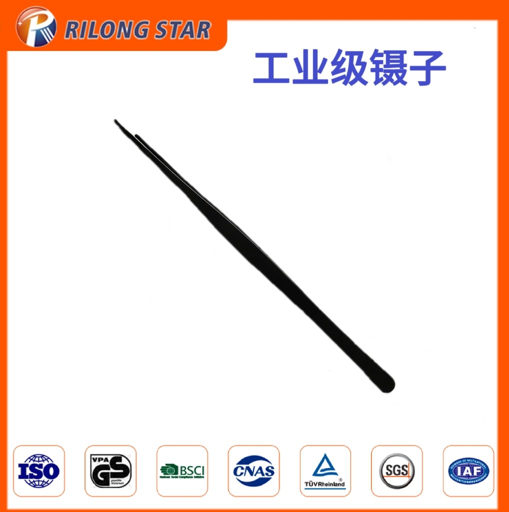 Rilongxing 販売ロングステンレス鋼ピンセット単一帯電防止スプレー黒カスタマイズ可能な研削エッジストレートエルボ家庭用