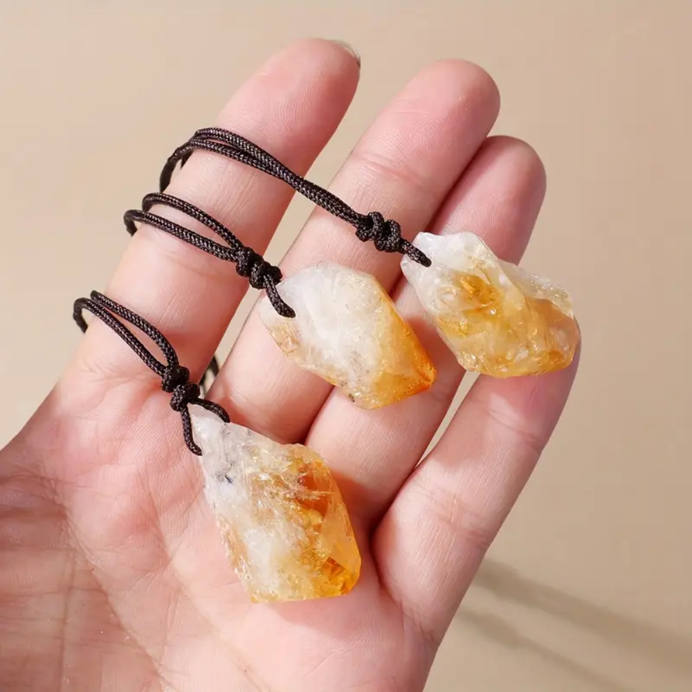 天然巴西黄水晶 晶牙原石吊坠 打孔编织黑绳项链装饰挂件