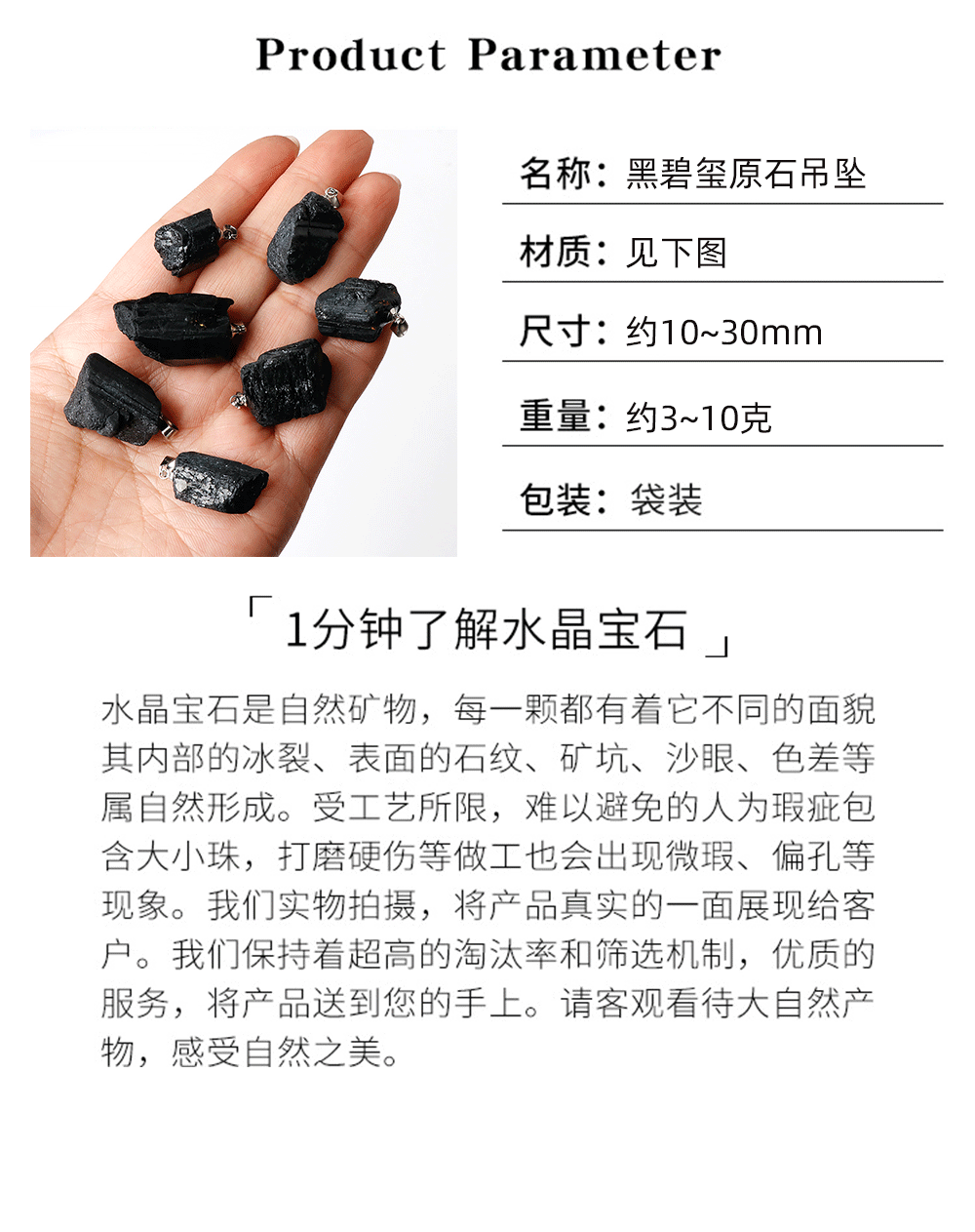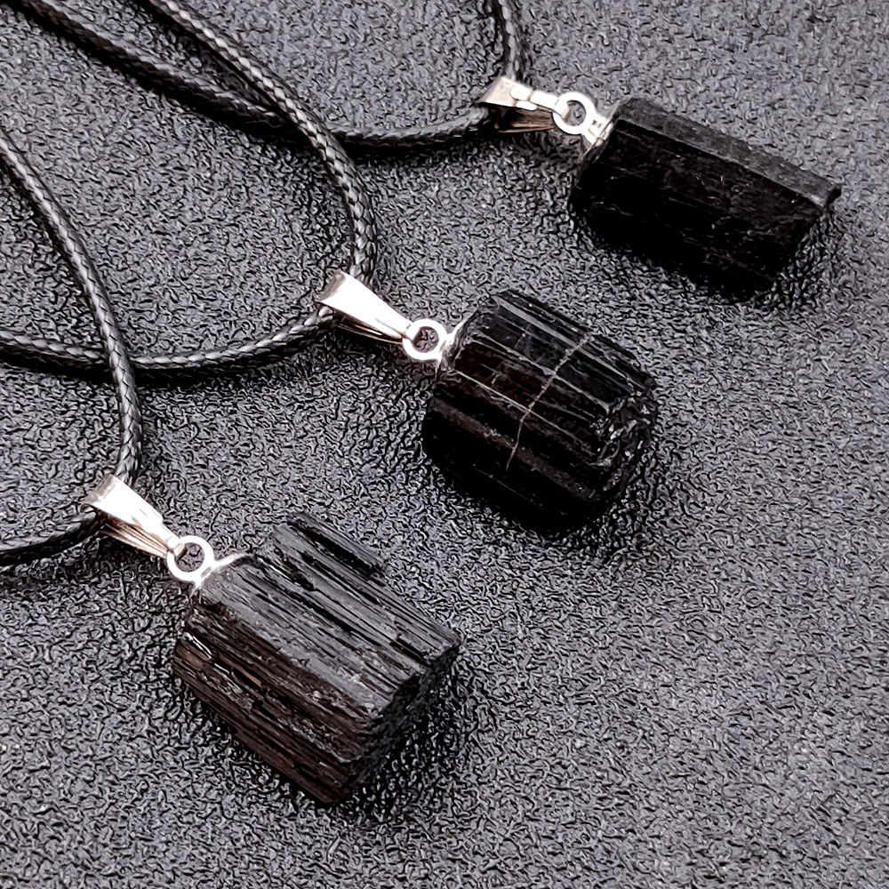 天然黒碧璽原石ペンダント不規則ペンダント随形トルマリン鉱石標本ネックレスクロスボーダーメーカー