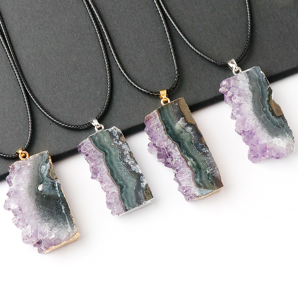 天然紫水晶クラスタ原石スライス不規則ペンダント鉱標研磨鉱石diyセーターチェーンネックレスクロスボーダー