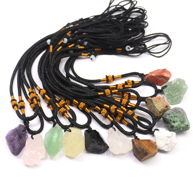 アマゾン天然原石ペンダント不規則紫粉黄白水晶原石ペンダントネックレス卸売りスポット