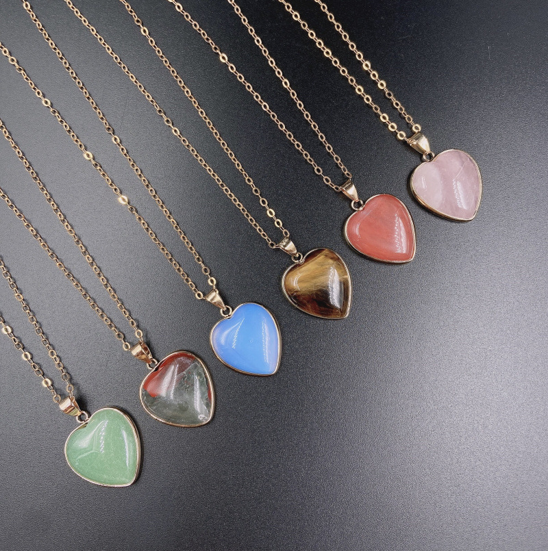 愛のペンダントハート形瑪瑙の多色のペンダントのネックレスの虎の目の粉の結晶の白い水晶の愛のペンダントの小さい桃の心のネックレス