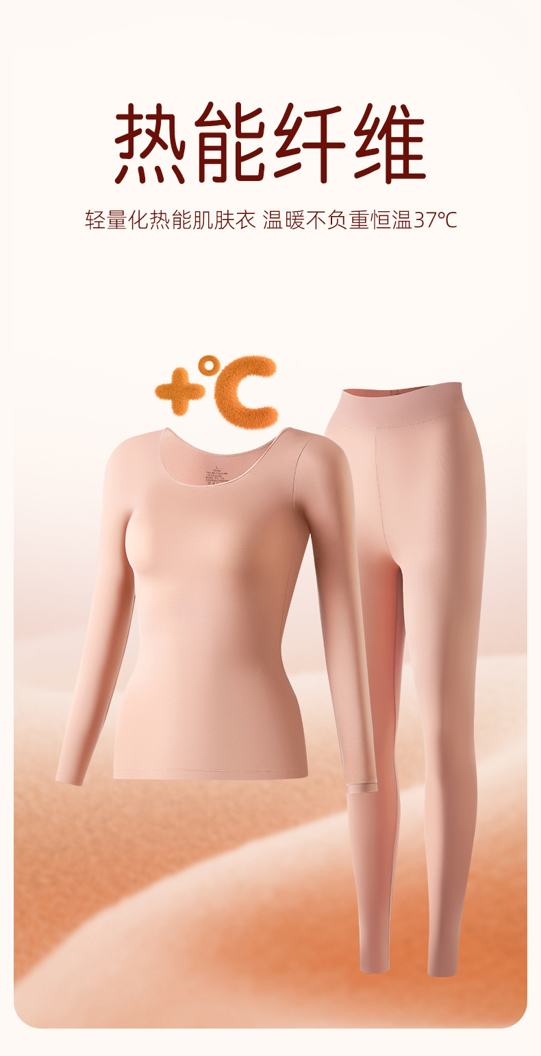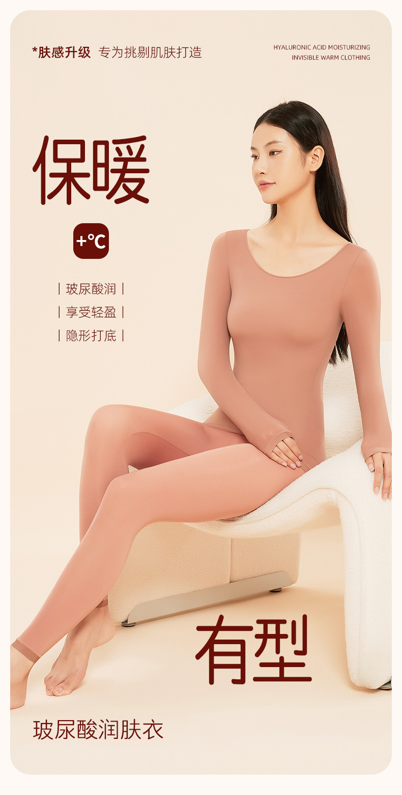ヒアルロン酸保温下着女性超薄型シャツ美肌肌底服発熱秋衣秋衣秋ズボンセット秋冬