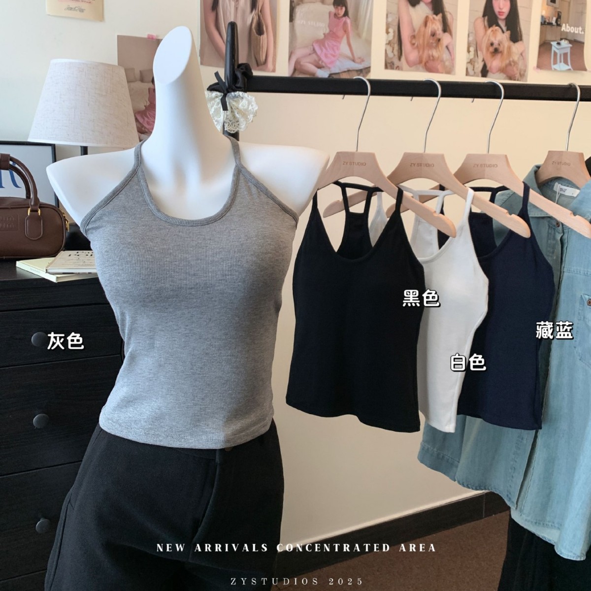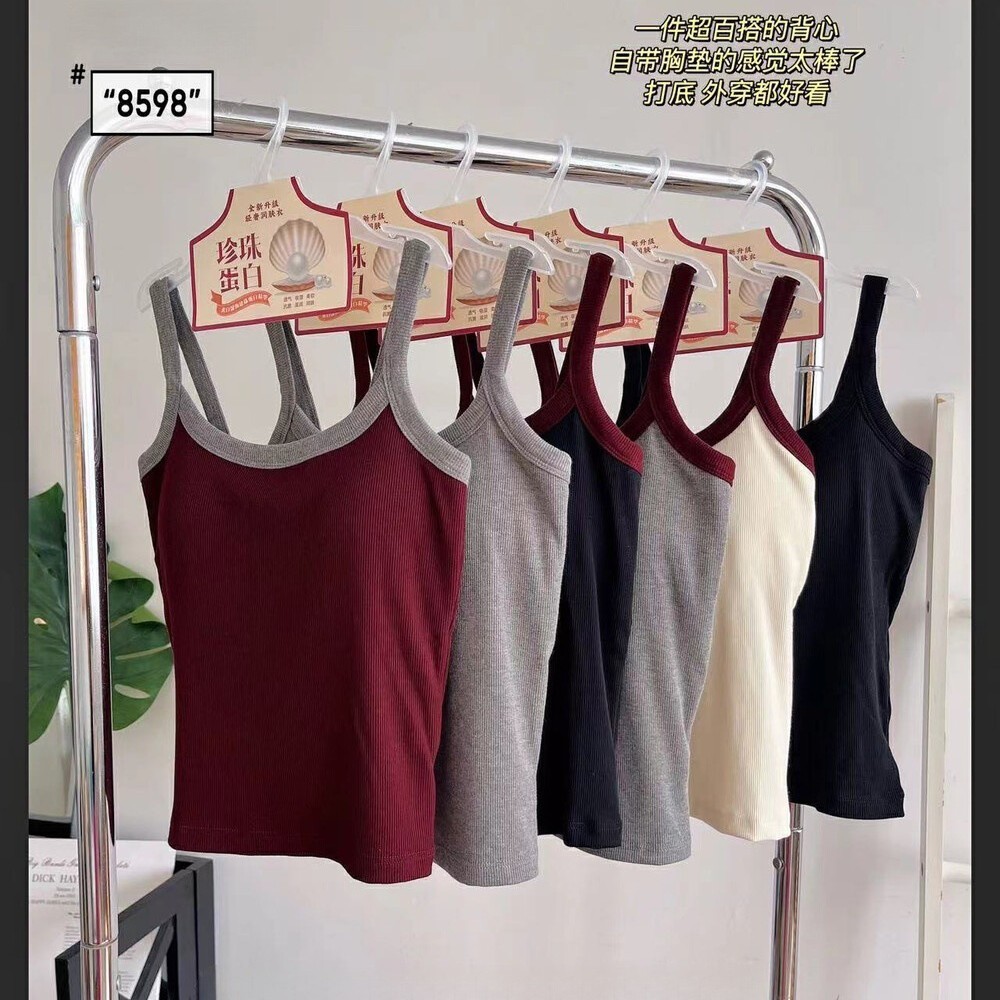 【ファッションガール】工字ベストの女性ノースリーブは胸パッドを持っています。