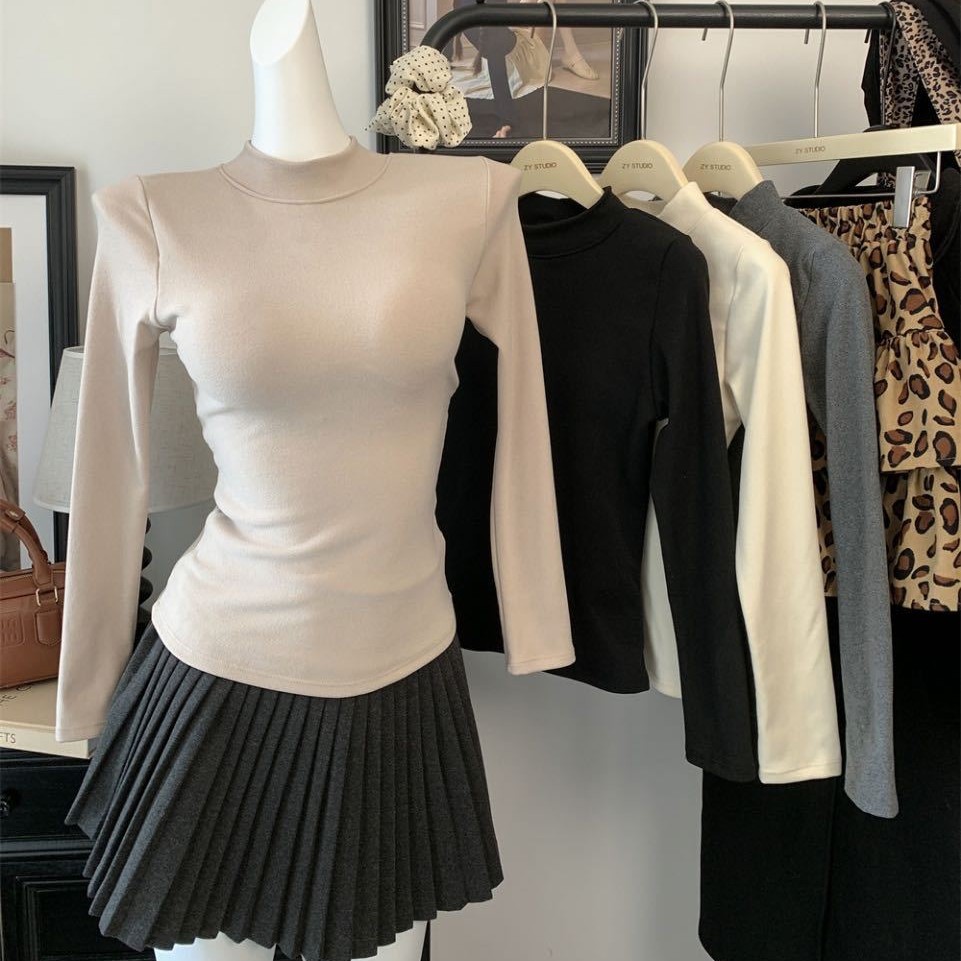 ベルベット半高襟ベルベットtシャツ女性秋冬インナーシャツ下着上着長袖ギャル修身女装