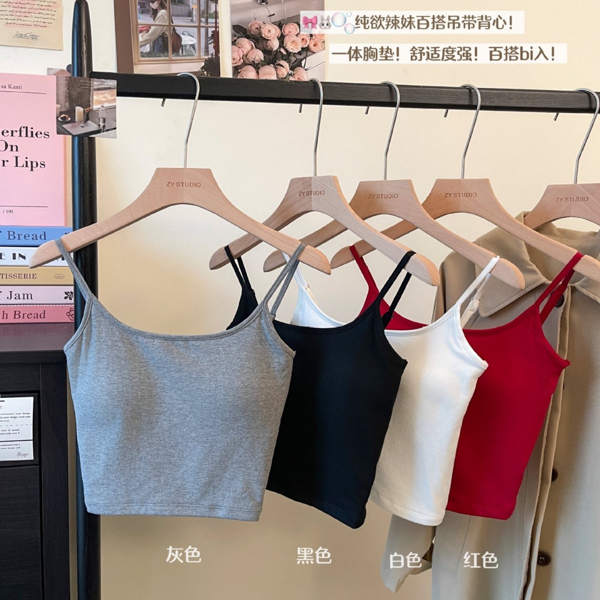 【ファッショナブルガール】ホットガールセクシーストラップホルターネックバックレスサスペンダー内蔵胸パッド付き純粋な欲望多用途ボトムストップ