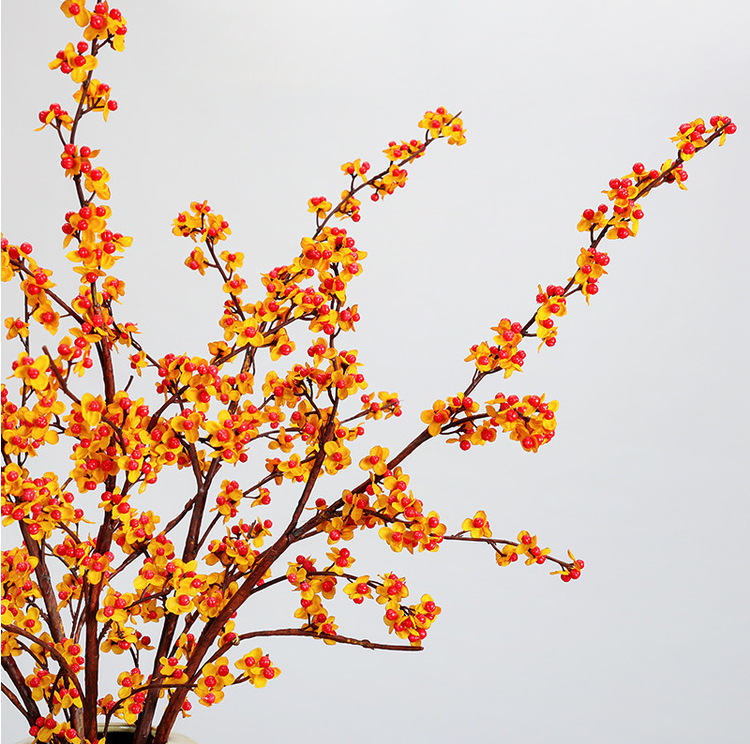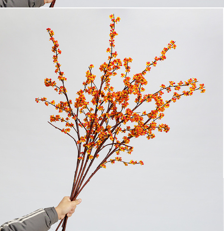 長枝の絹の花のシミュレーションの花の大きい枝の梅の花の枝の乾いた花の客間の中国式の家庭の置物の生け花の結婚祝いの花の芸