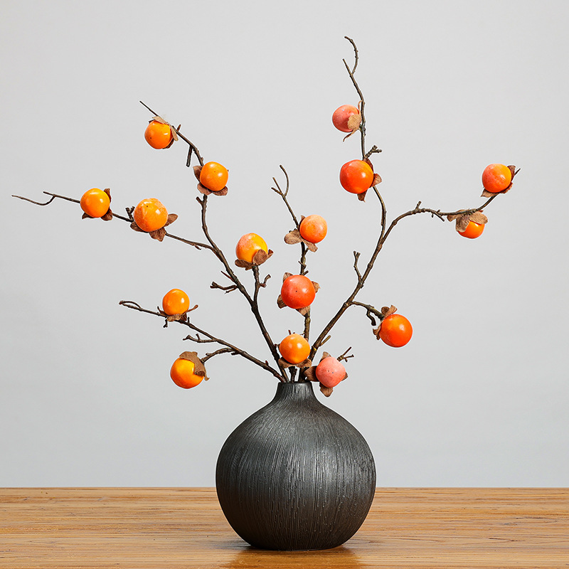 南蛇つる造花フォーチュンフルーツ小さな柿造花装飾中国禅スタイルホームデスクトップホテル装飾