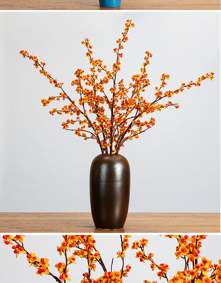 南蛇藤花红果发财果浆果假花客厅插花干花新中式侘寂摆件