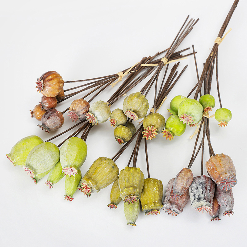 アメリカの田園クロスボーダーのシミュレーション花植物の偽のケシの実の花の花束は花のケシの実の花火の実の装飾品を持ちます。