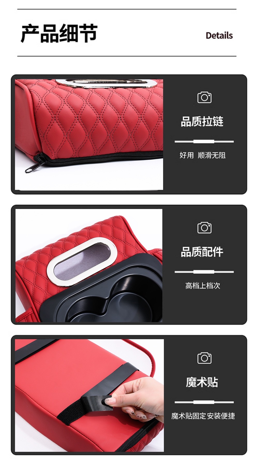 車載ティッシュボックス手すり箱増高パッド自動車中央高級手すり箱収納袋コップ棚四合一