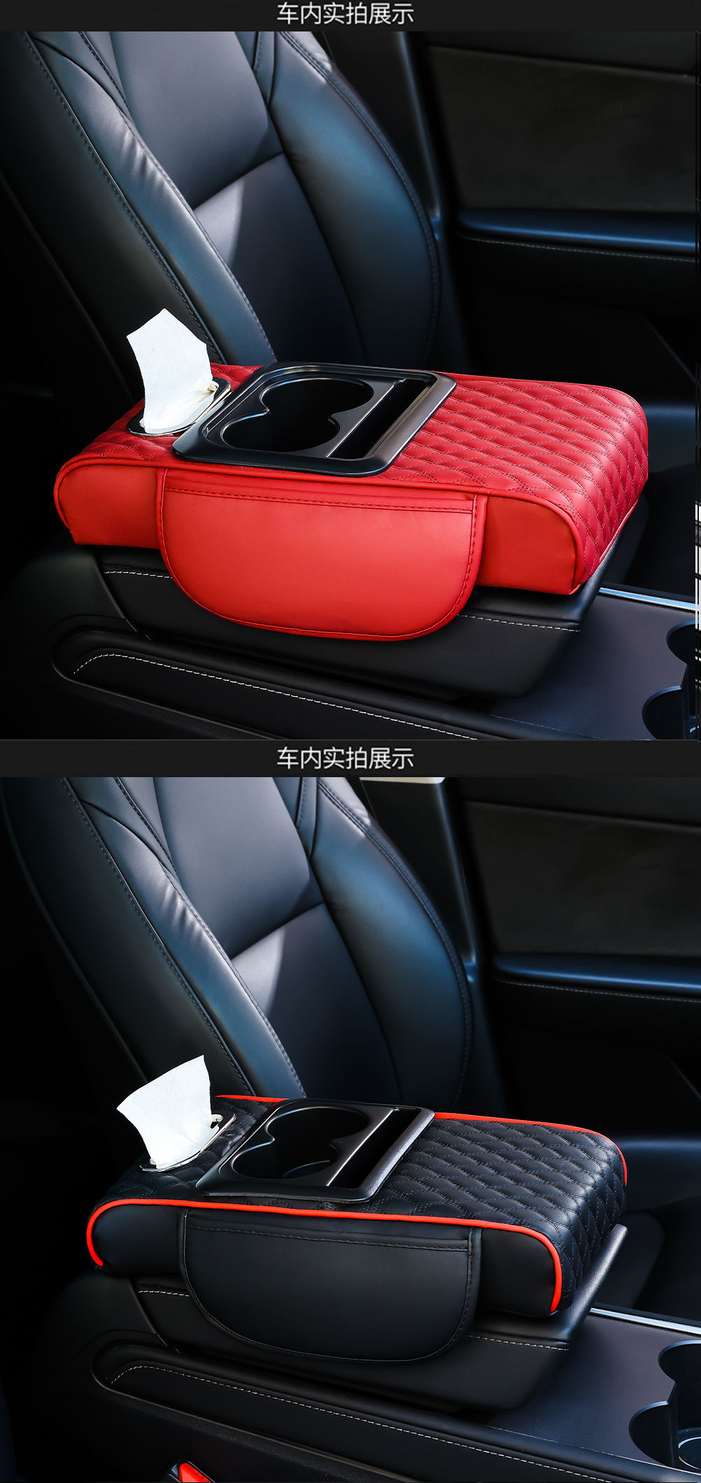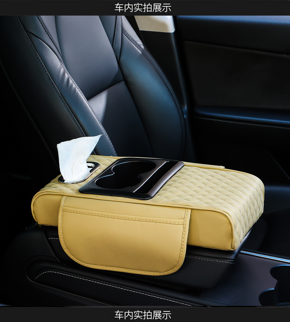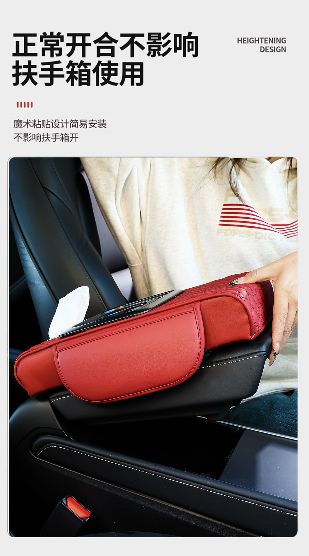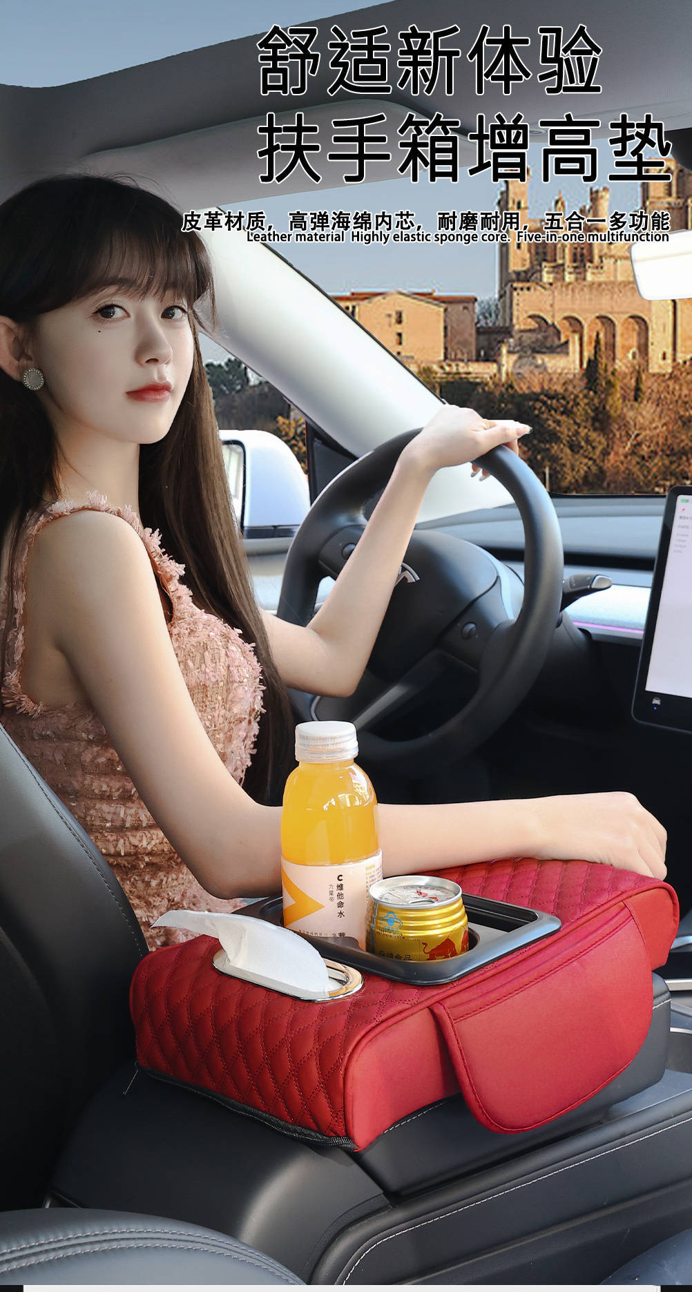 汽车扶手箱增高垫高级感中央扶手箱多功能四合一车载纸巾盒水杯架