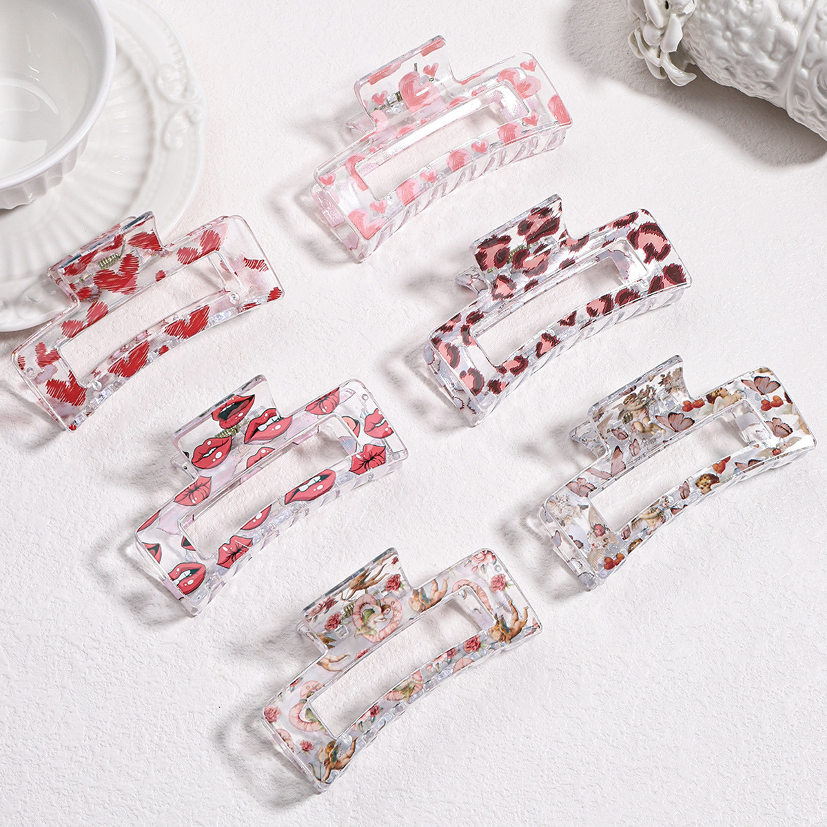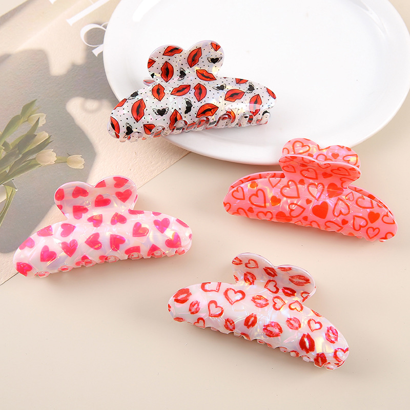奇覧クロスボーダーバレンタインデー愛髪クリップシンプルなプリント盤髪クリップ高級感サメクリップ髪飾り卸売り