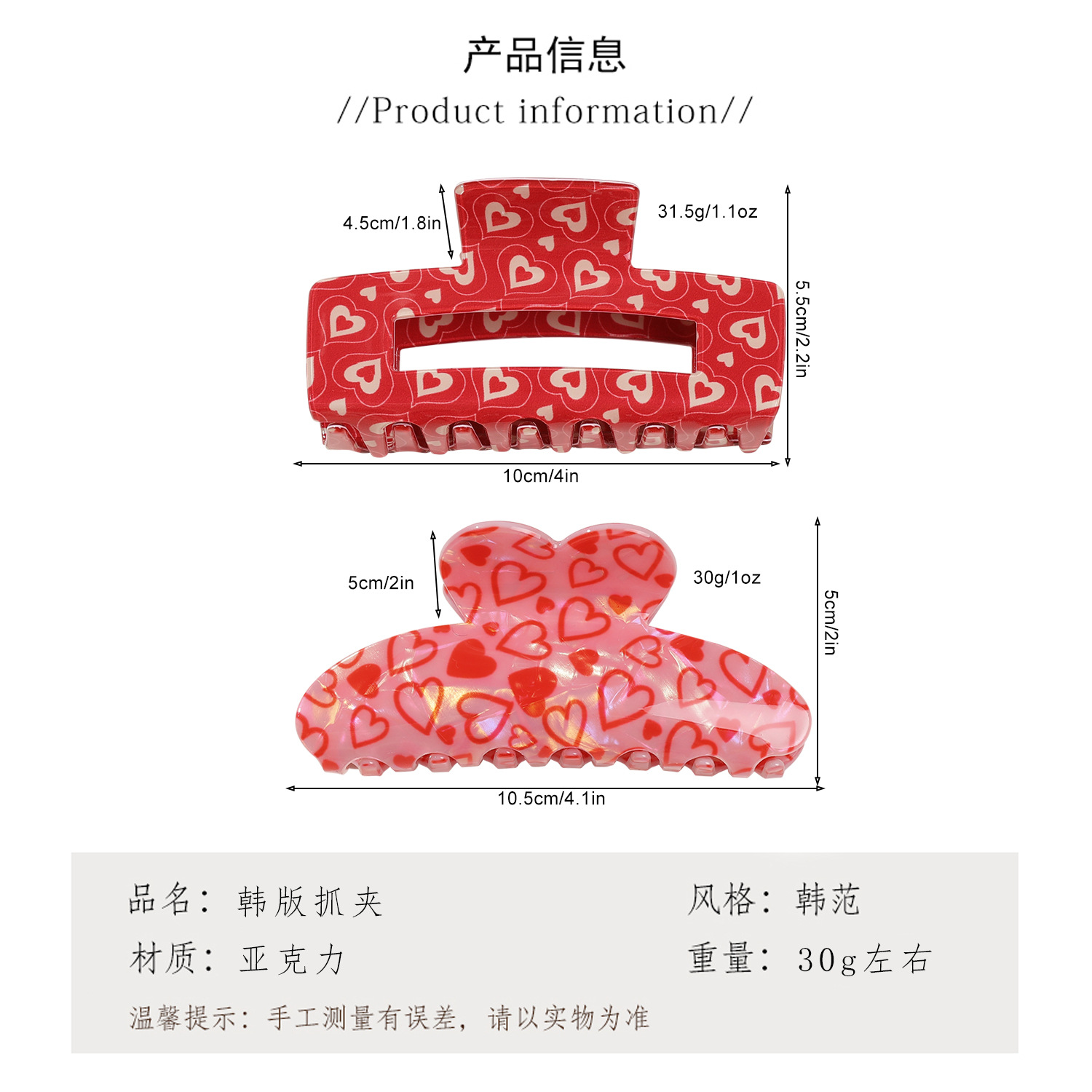 跨境欧美情人节大号长方形发夹爱心丘比特玫瑰新款鲨鱼夹抓夹工厂