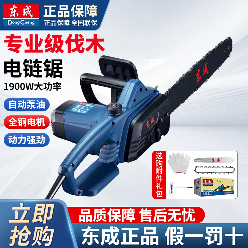 东成电锯家用锯树大功率伐木锯220V插电式锯柴东城小型手持电链锯